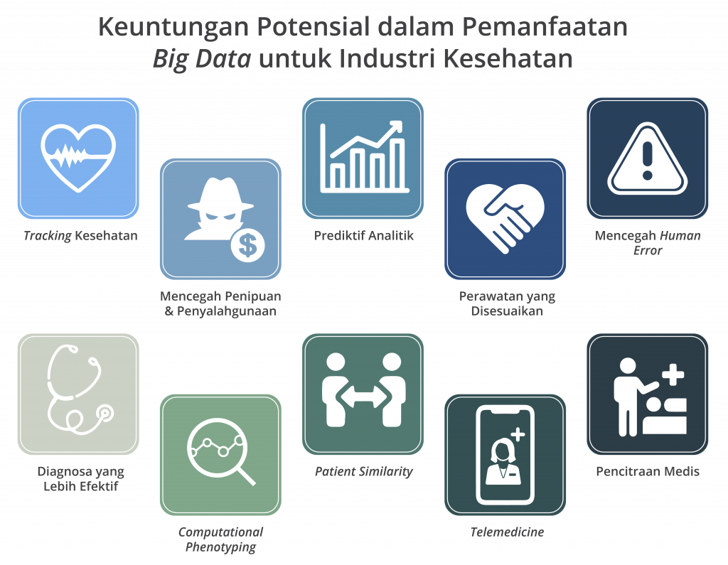 Pemanfaatan data atau biasa disebut big data memiliki potensi besar dalam bisnis di mana semua data yang ada terhubung satu sama lain dan dapat memberikan insight serta manfaat seperti health tracking, menganalisa dan memprediksi, menyediakan layanan yang lebih sesuai dengan setiap pasien, diagnosa yang lebih efektif, kemajuan dalam telemedicine serta masih banyak manfaat lainnya.